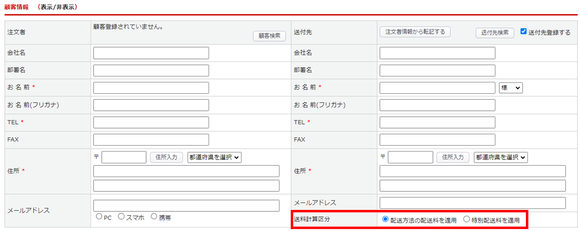送料区分が特別配送料対象(送料計算区分B)の場合に特別配送料が適用されます。