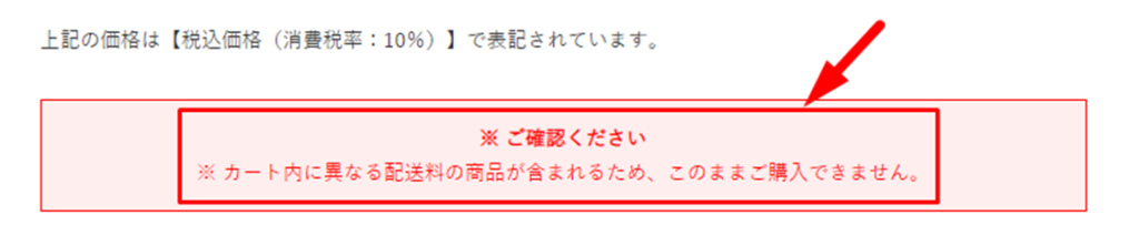 特別配送料が設定されている商品と、設定されていない商品の同時購入はできません。