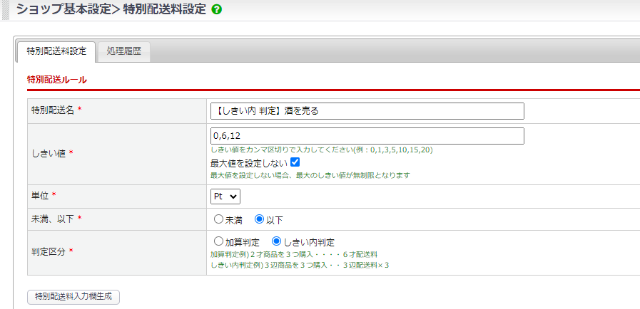 | 特別配送名* | 特別配送名を任意で設定します。 |