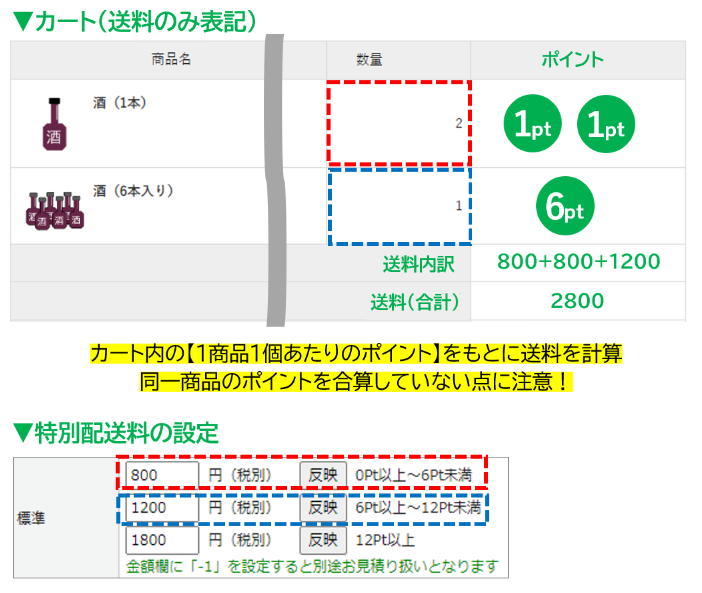 ③特別配送料が適用された商品をカートに入れると、ポイントと送料を算出