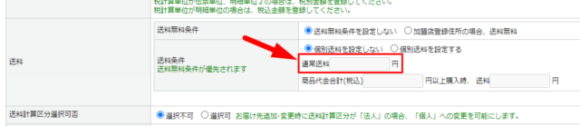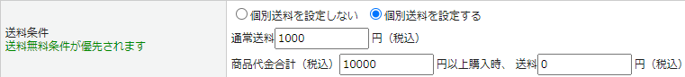 送料設定を複数行った場合、優先度の高い送料が適用されます。