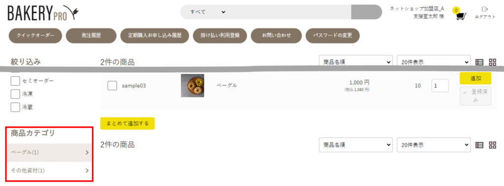※カテゴリをクリックすると、カテゴリに含まれる商品のみ表示されます