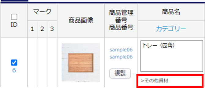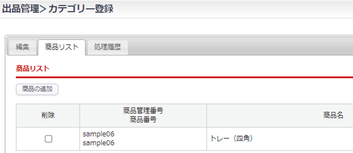 出品 > カテゴリー登録 >対象カテゴリーの詳細画面 > [商品リスト]タブ