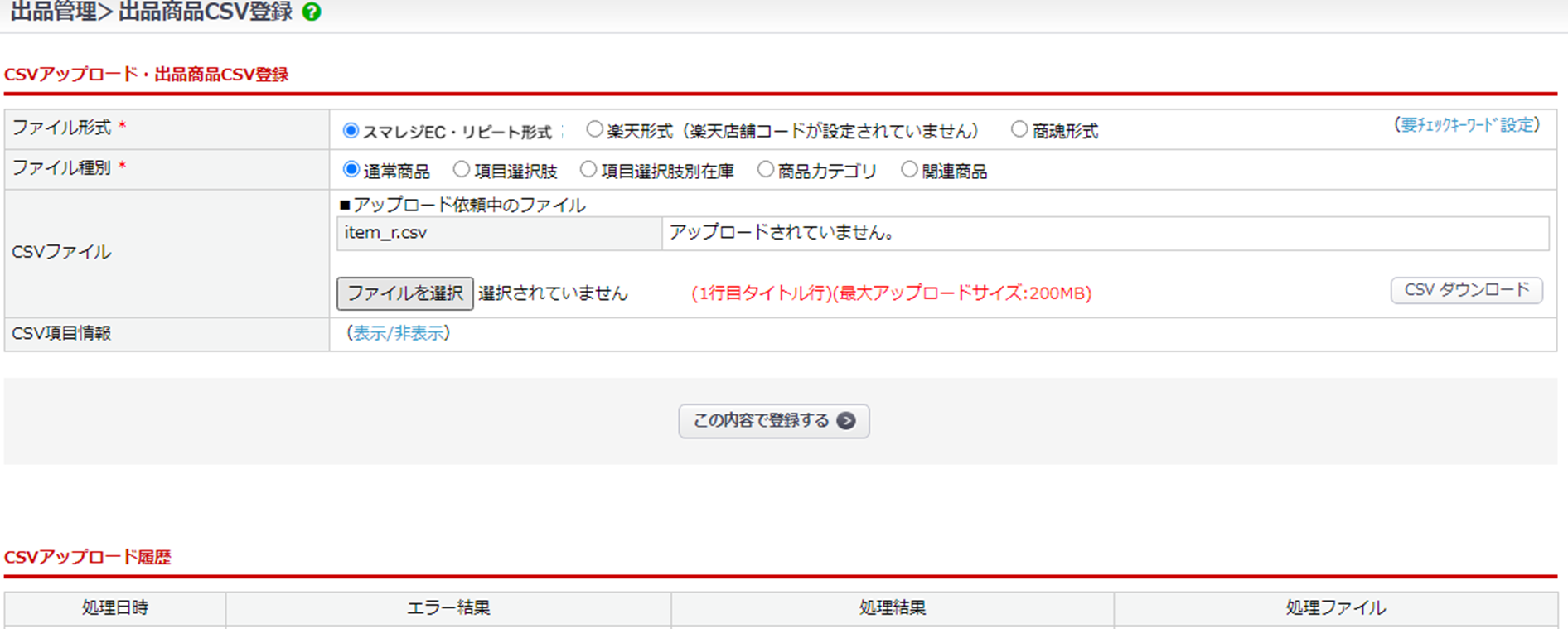 ※規格商品を登録する場合は、通常商品の他に下記のCSVファイルの登録が必要です。
