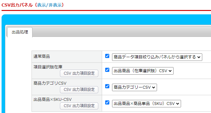 ・出品商品×SKU-CSV:在庫設定・商品SKU設定 ※