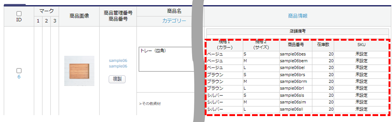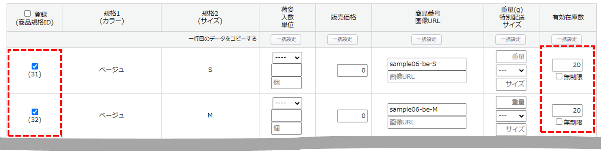 登録した規格商品の販売には、在庫登録が必要です。本ページ下部の在庫設定-STEP2>以降をご確認ください。