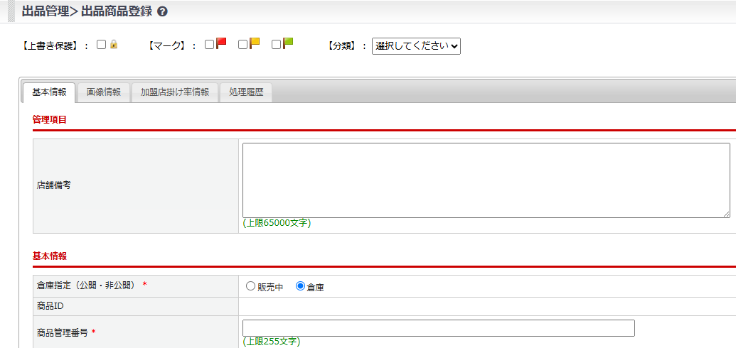 ※更新時[u]、商品管理番号の不一致はエラーとなります。登録内容をご確認ください。