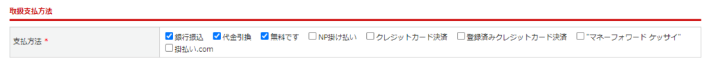 商品の支払方法は、商品の配送方法に紐づいています。そのため、商品ごとに支払方法自体を指定することはできません。
