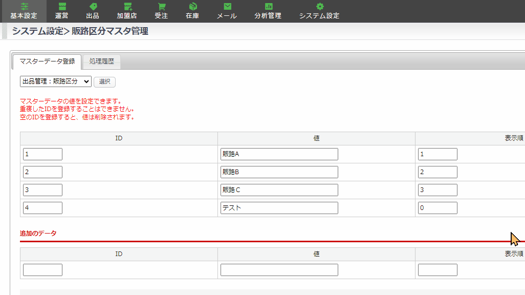 新たに販路区分を追加し、特定の加盟店に紐づけるまでの手順を説明します。