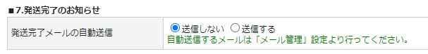 基本設定>管理システム設定>管理システム設定 >[業務フロー]タブ > ■7.発送完了のお知らせ で、