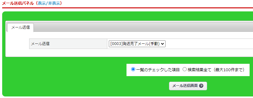 受注 > 受注一覧メール送信パネル から、手動送信が可能です。