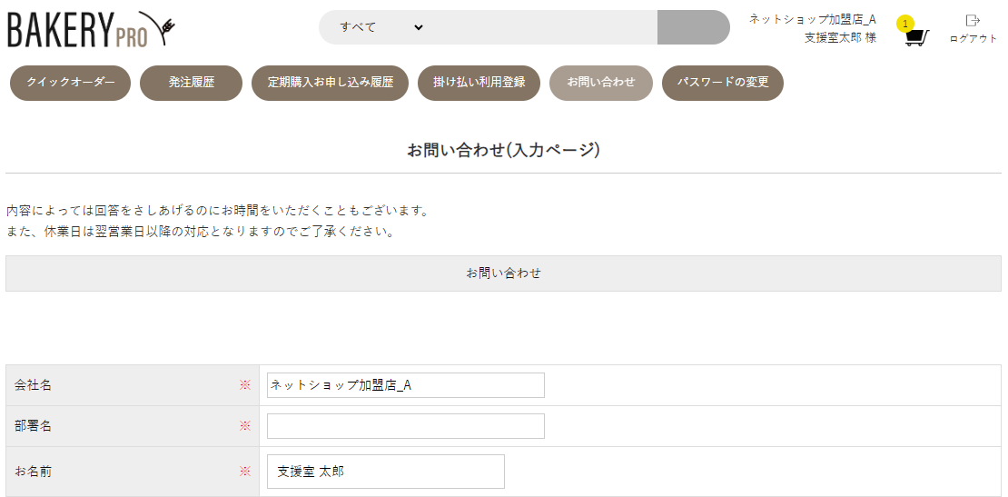 加盟店は、MYページのフロント画面からお問い合わせを送信できます。