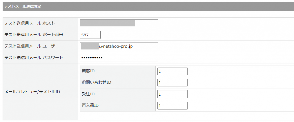 テストメールアドレスの設定