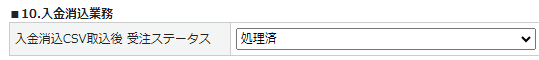 入金消込CSV取込後の受注ステータス移動に関する設定です。