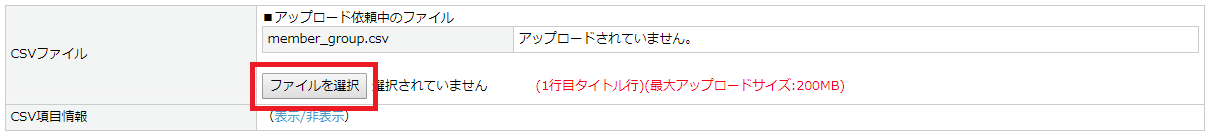 「CSV項目情報」から(表示/非表示)をクリックすると項目一覧が確認できます。