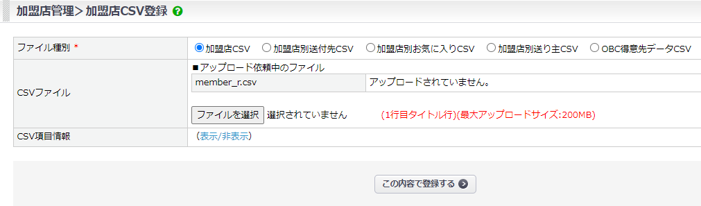 ファイル選択後、「この内容で登録する」ボタンをクリックしてください。