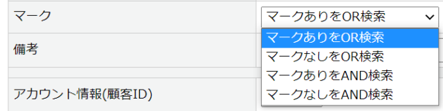 | マーク | 加盟店グループに設定されたマークを条件に検索します。 プルダウンより詳細な検索条件を設定できます。 ![]() |