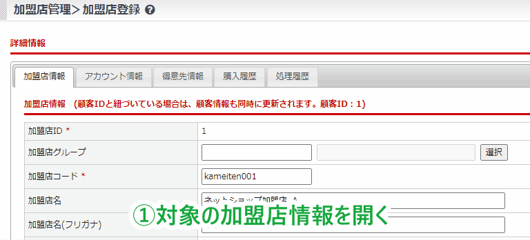 [加盟店情報]タブから加盟店グループを選択します。