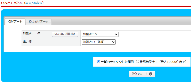 加盟店 > 加盟店管理 から対象の加盟店CSVをダウンロード