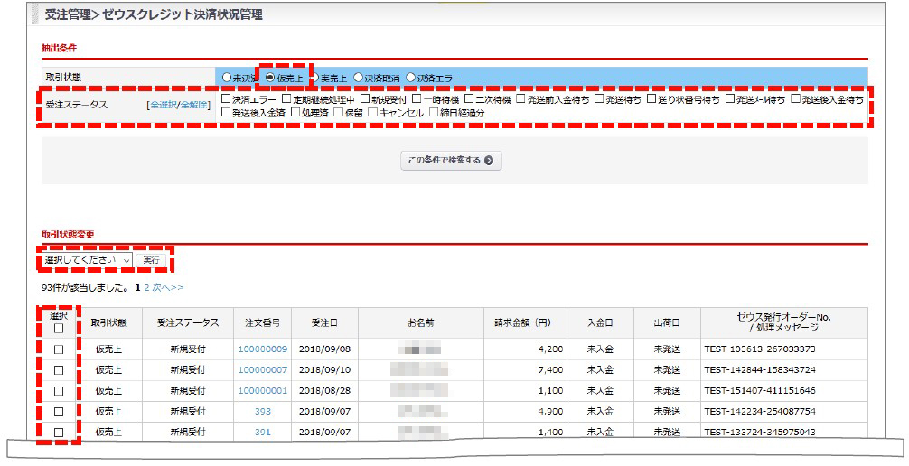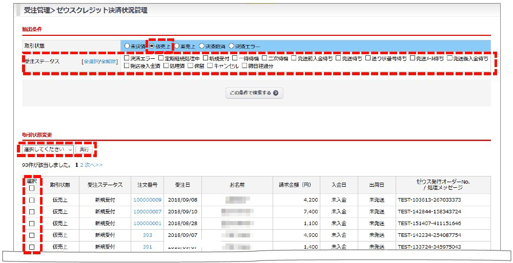 [受注 > ゼウス決済状況管理 ]より、一括処理が可能です。