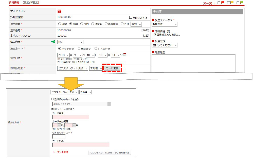 受注登録画面から再オーソリ(再決済)を行う場合