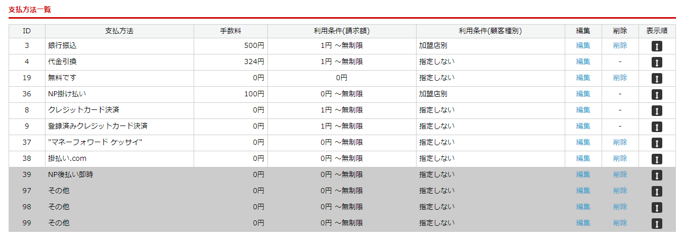 支払方法ID支払方法を登録した際に割り振られるIDが表示されます。