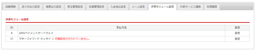 基本設定 > 店舗設定>[決済モジュール設定]タブ決済モジュール設定