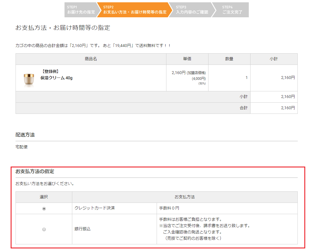 クレジットカード決済、銀行振込を利用可能な支払方法として設定