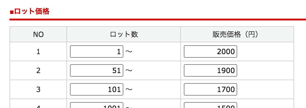 • 10個目からは1800円  というように、段階的にロット価格を適用する設定です。
