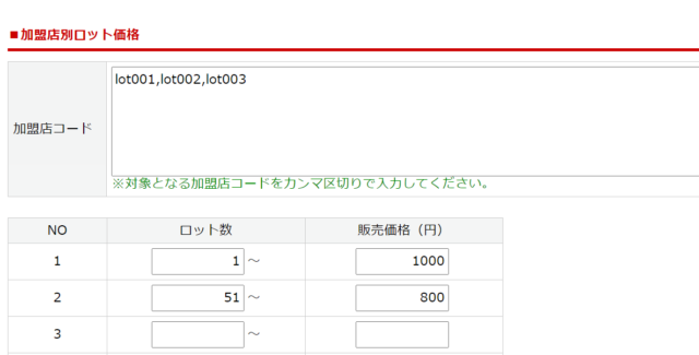 特定の加盟店に対して、ロット数に応じた価格で販売できます。