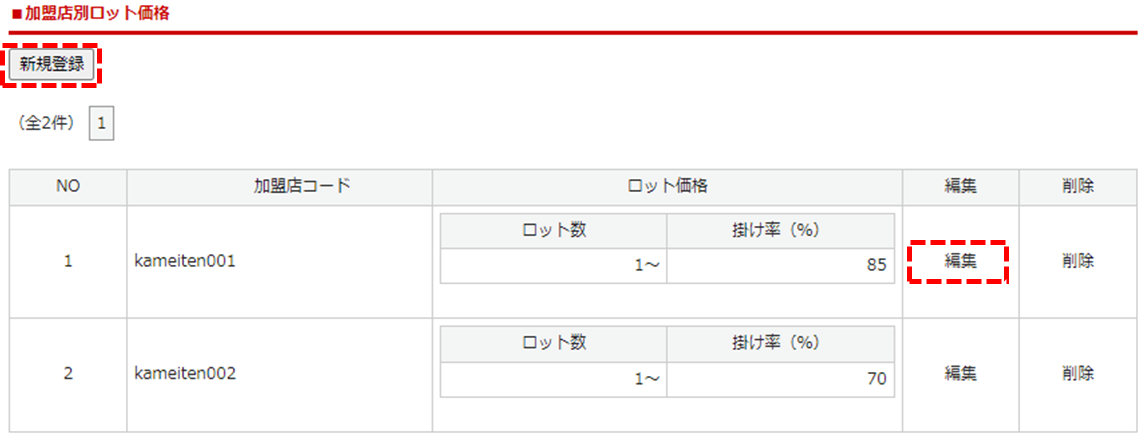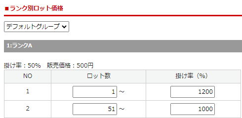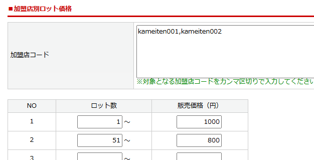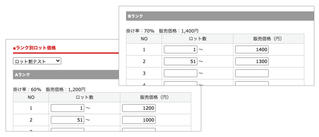 ロット数に応じた販売価格を、加盟店ランクごとに設定が可能です。