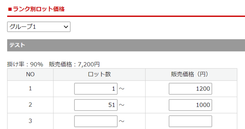 上記のような段階的な価格設定を、10段階まで登録できます。