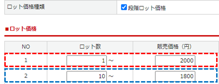 ※上記の設定で段階ロット価格を適用しない場合、10個購入=1個あたり1,800円となります