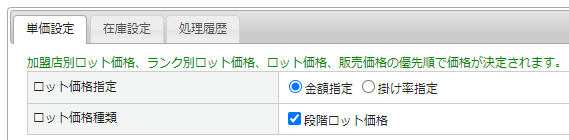 • ロット価格指定:販売価格を金額指定にするか、掛け率指定にするか