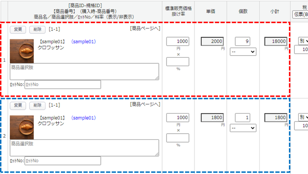 同じ商品に複数パターンのロット価格設定がされている場合、