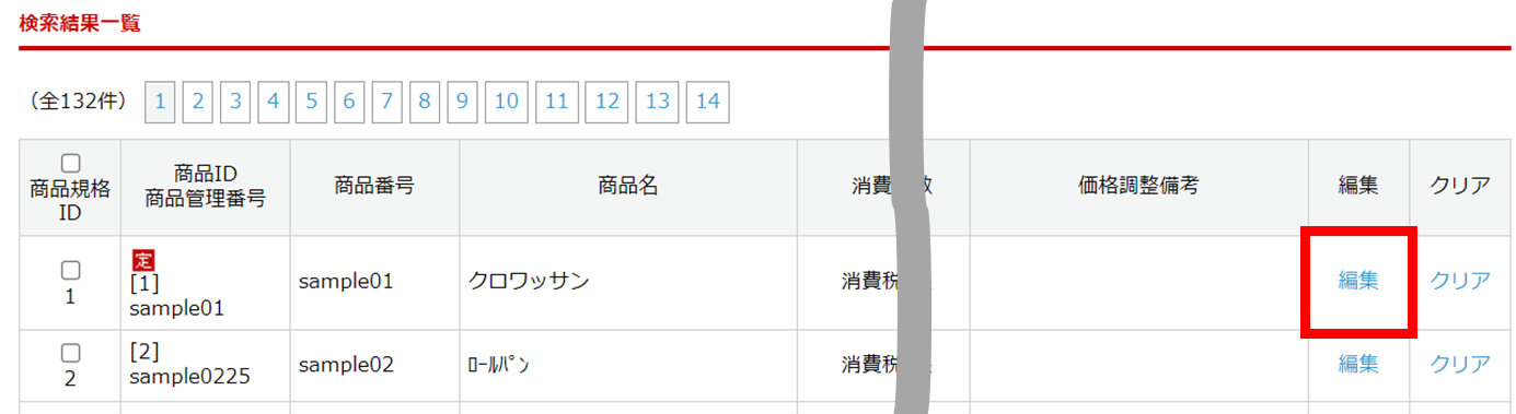 加盟店 > 価格・在庫調整設定 から、対象商品の編集画面を開きます。