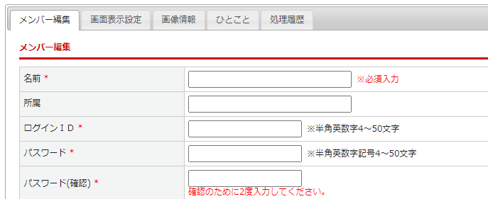 ログインID*メンバーが管理画面にログインする際に使用するIDを入力してください。