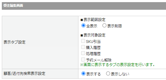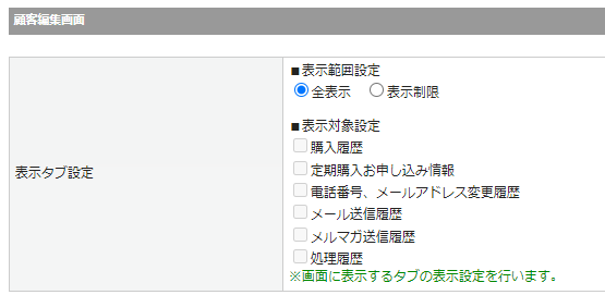 表示タブ設定顧客編集画面の表示タブを設定します。