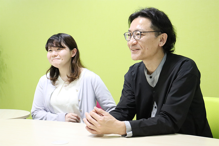 開発部 竹中さん(左)、営業部 岸波さん(右)