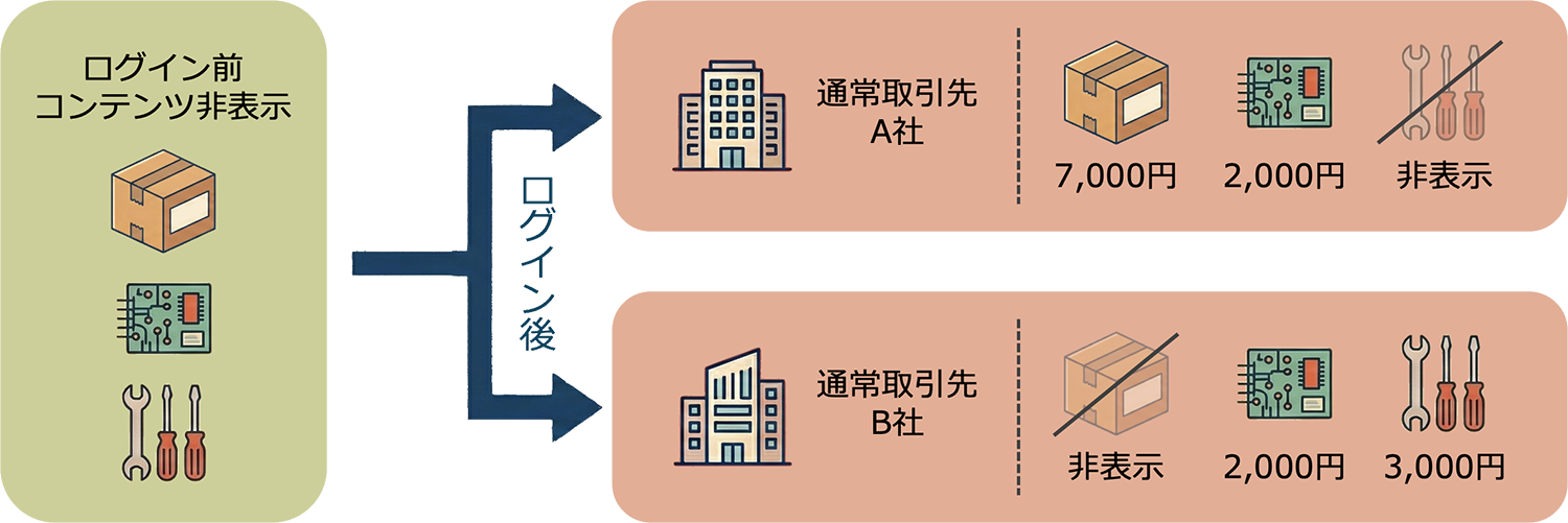 機能②販路設定:取引先ごとに見せる商品と買える条件を切り替える