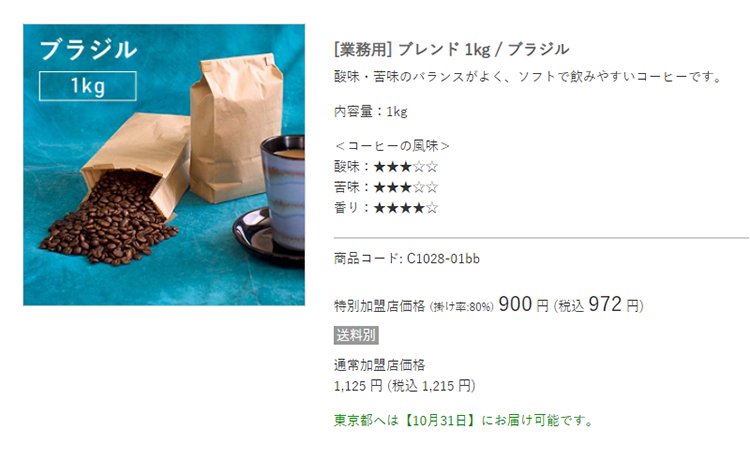 うちの卸専用ECサイトで業務用コーヒー豆を取り扱えるようになってね