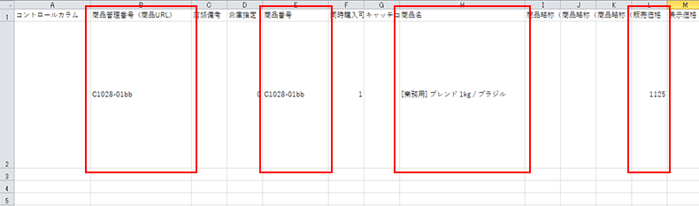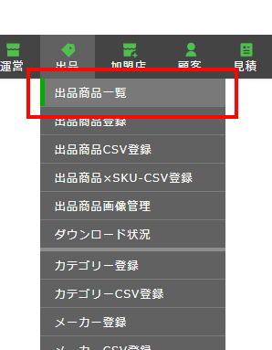 次に、たった今手動で登録した商品のCSVファイルをダウンロードして、