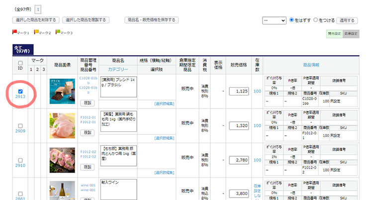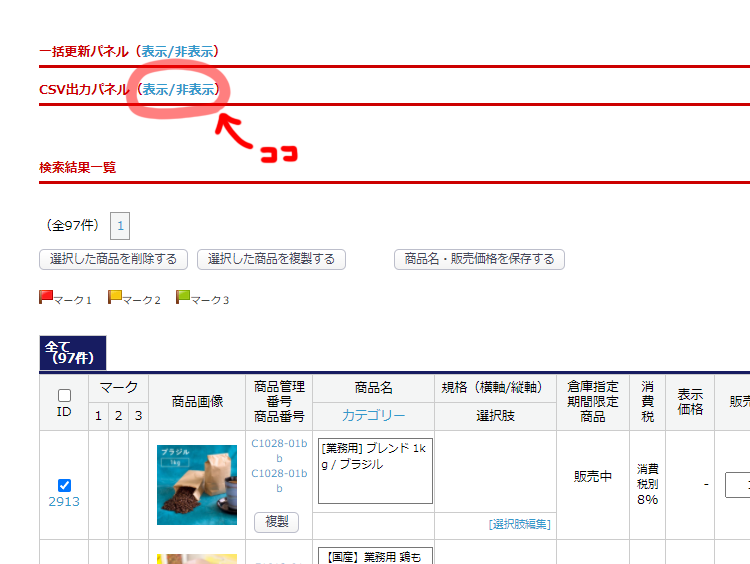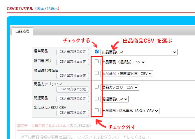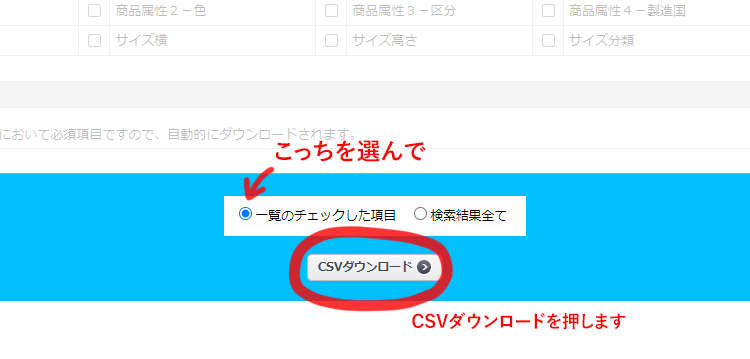 チェックを入れた商品だけのCSVファイルをダウンロードします!