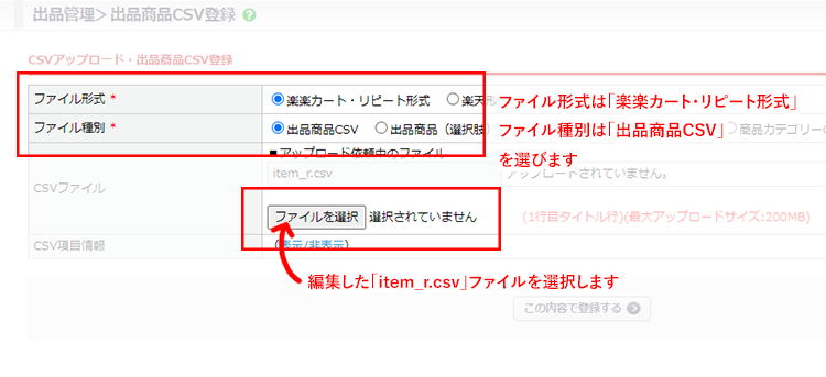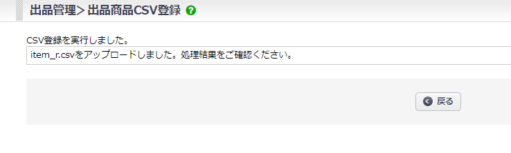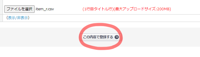 あとはCSVファイルをアップロードすれば商品が登録されるはず・・・