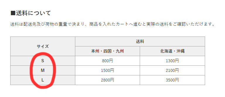 よそ様のECサイトではサイズによって配送料を変えているようなんだが、