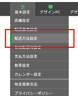 配送方法設定を開いて