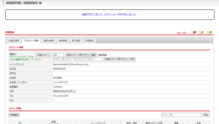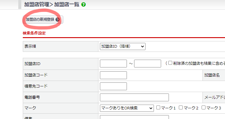 「新規登録ボタン」を押して、加盟店の新規登録画面を開きます