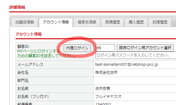 よし、あとは代理ログインボタンを押して代理注文・・・