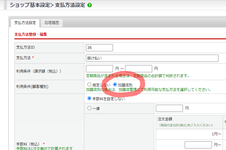 それでは「加盟店A」だけ掛け払いOKに設定しますね!