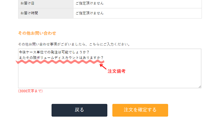 今日は商品注文時に【備考欄】に入力いただいた内容を、